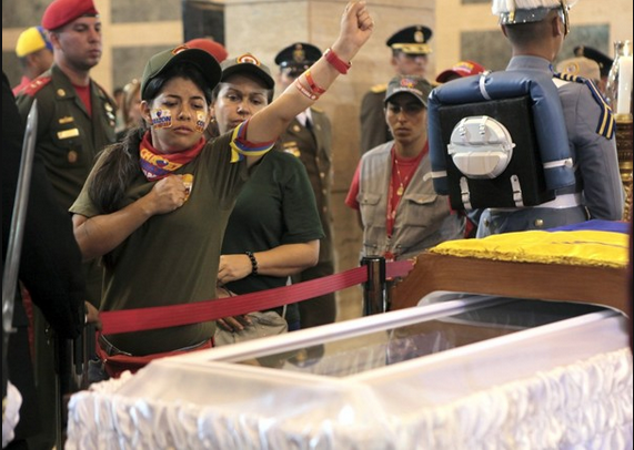 在军事学院里,查韦斯的遗体安放在玻璃盖子的棺材中,一位妇女向棺材中的领袖致敬。委内瑞拉总统、国家代理总统尼古拉斯-马杜罗周四表示,查韦斯的遗体将 会永久地在军事博物馆的玻璃棺材中展示给世人。”我们已经决定将我们的‘指挥官总统‘的遗体进行防腐处理,以便于永久向世人开放,“马杜罗称。“就像胡志 明、列宁和毛泽东那样。”