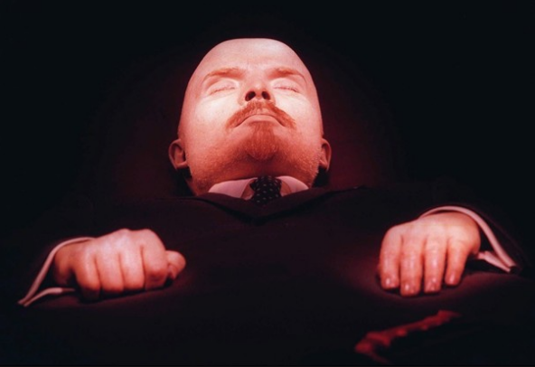 1924年前苏联领导人列宁逝世,不久后他的尸体经过防腐处理,被安葬在克里姆林宫附近的坟墓里。他的尸体以64度的温度保存(此处应该为华氏64度,换算成摄氏为17.78度),并被浸泡在轻度漂白粉、供油和乙酸钾之中。