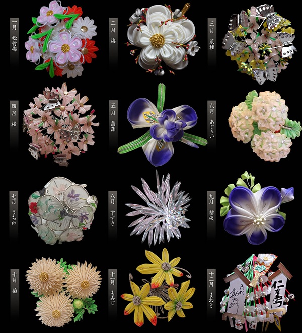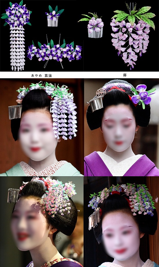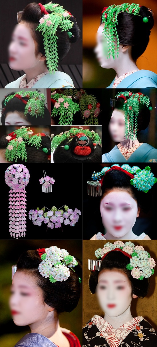 舞妓的发饰非常华丽,尤其是头上的花簪,全年12个月,每个月的内容都不同。下边来详细说一下。