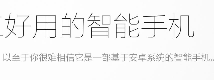 锤子官网多数宣传图的字体使用的是方正兰亭系列,其中大标题是超细黑,副标题是纤黑。这并不是一个“问题”,不过虽然兰亭系列可以算是国内数一数二的中文字体,但绝大数的中文字体提供的西文都差强人意。