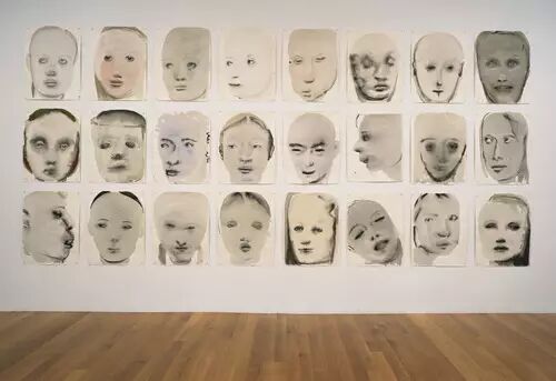 这组画她充分运用了水彩的晕染、流淌、飞白等特性与技巧制造出特殊画面效果,描绘出一系列安静的、梦幻般因爱而受伤的人物形象。同时,她还采用多个头像并置的方法,给人以视觉冲击,从而把一个头像的内涵,扩大至十倍、二十倍,弥漫其间的伤感也增强了十倍、二十倍。