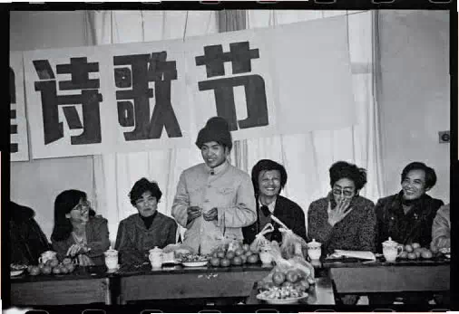 ▲顾城发言逗乐大家/1986年12月,成都