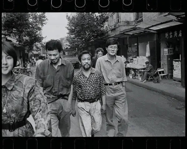 ▲刘晓津、叶永青、栗宪庭、吕澎在昆明逛街/1992年,昆明