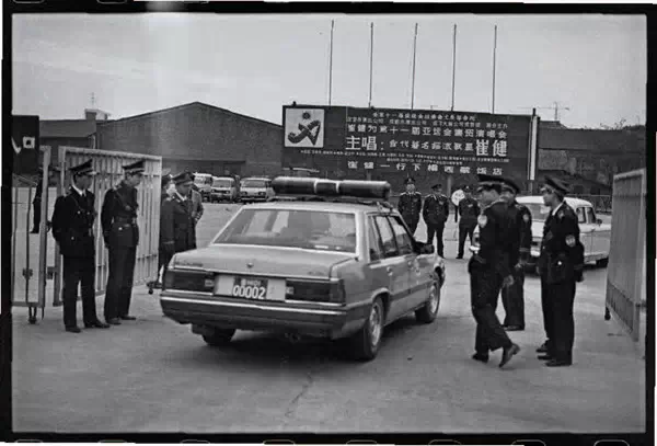 ▲执勤的警车驶入/1990年4月,成都
