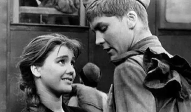 (资料图:苏联电影中女孩送别战士的镜头)