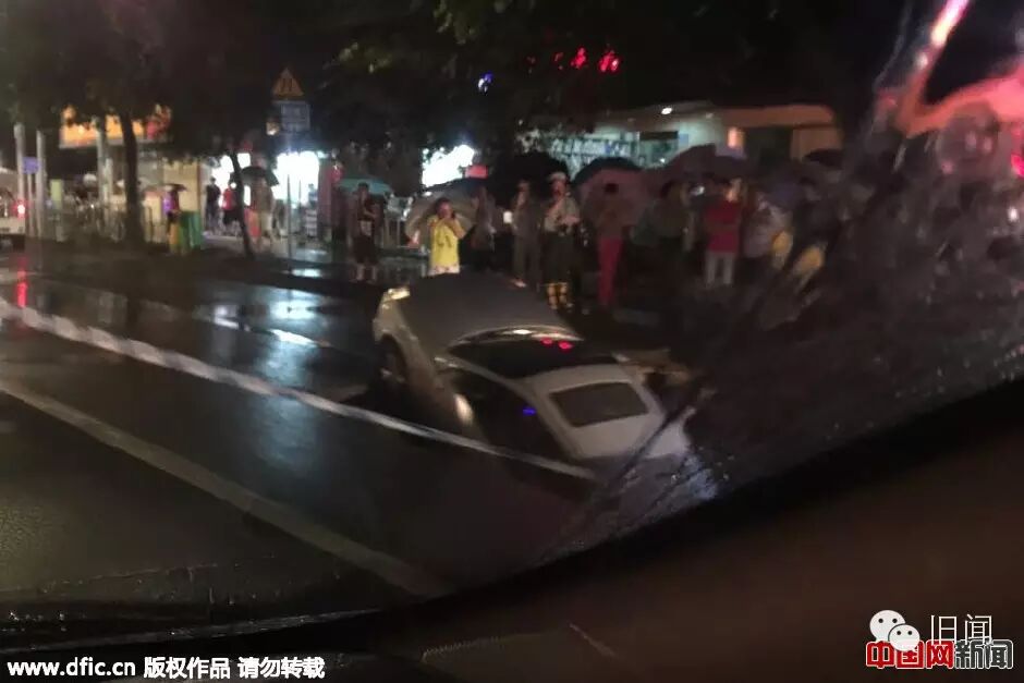 深圳暴雨路面地陷大坑 车辆被卡“动弹不得”