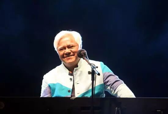 胡德夫顶着满头白发在草莓音乐节舞台上边弹边唱