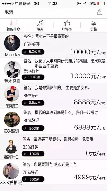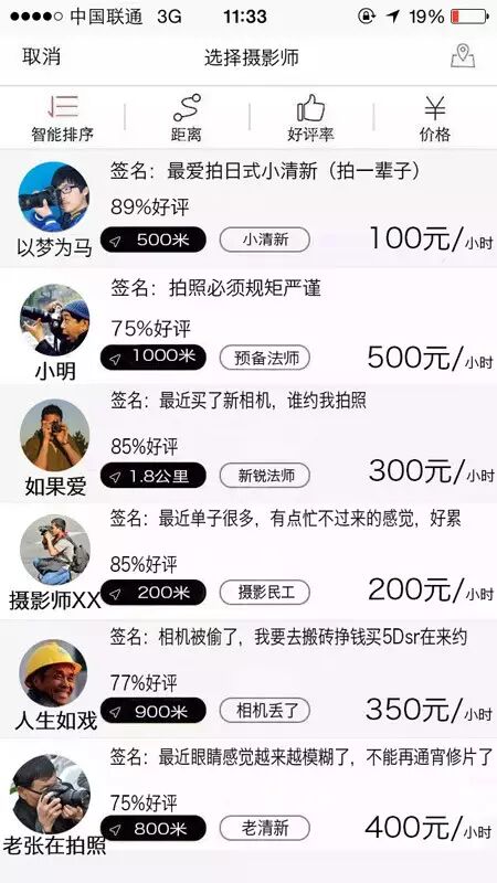 ▽进入主界面后,会看到基于您当前位置周边的摄影师资源。