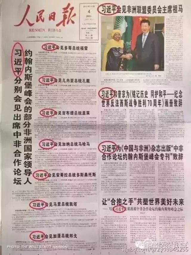 @qcyl:12月4日是中國全國人大通過的「憲法日」。但是這一天的「人民日報」頭版滿眼都是習近平,完全找不到「憲法」的蹤影。沒有什麼,比這張照片更能說明今天的中國政治現狀了:現在的中國政治,沒有憲法,只有習近平。