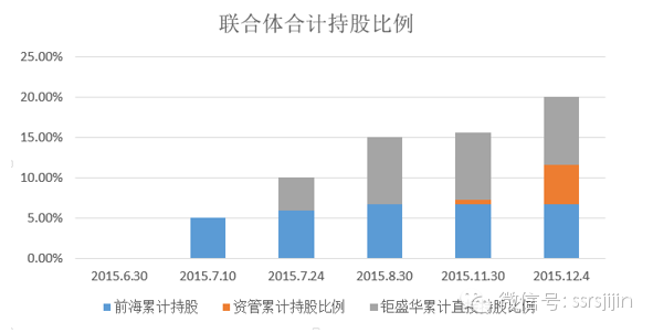 前海人寿和钜盛华自7月起通过二级市场买入万科股票,自7月11日前海人寿第一次举牌,钜盛华/前海联合体共发布简式权益变动书公告4次(含一次补充公告),详式权益变动书有关公告2次(含一次修订稿):