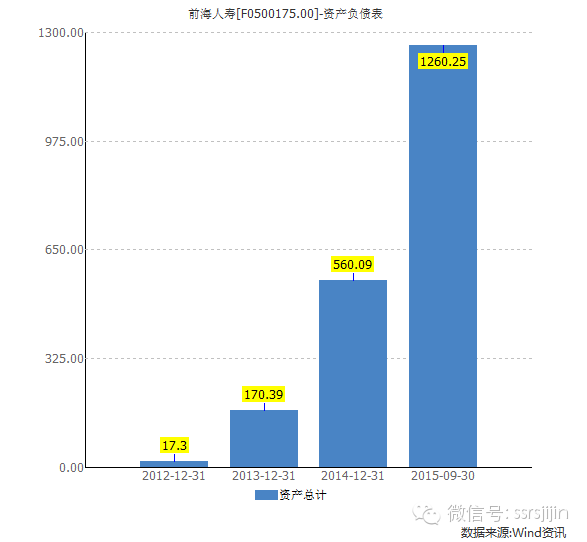 前海人寿成立没几年,但是总资产增加特别快,到2015年9月30日,已经达到1260亿规模。
