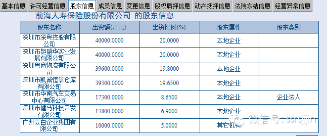然而,我们在工商信息查到的信息,之前钜盛华只是持有20%,深圳凯诚、华南汽车、广州立白(这个也是有名的潮汕人企业,对,就是生产立白洗衣粉那家)把前海人寿的股权转让给钜盛华,达到51%。我们从其他公开信息发现,前海人寿基本所有小伙伴都是宝能的。