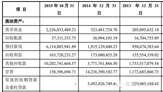 钜盛华除了找金融结构借钱,还找关联方借了不少钱。2015年10月末其他应付款飙升到112亿,增加了95亿。总的来看钜盛华找关联方或第三方融资了95亿,至于关联方或第三方怎会有能力给他提供31亿的现金呢?后面会提到这是靠抵押融资以及杠杆融资弄来的资金。