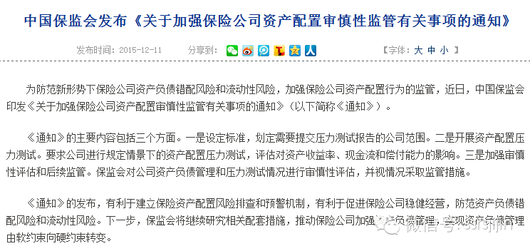 里面提及“为防范新形势下保险公司资产负债错配风险和流动性风险,加强保险公司资产配置行为的监管”。其实就是对这类行为的监管。