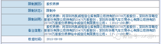 小伙伴凯诚恒信今年9月质押了前海人寿股权: