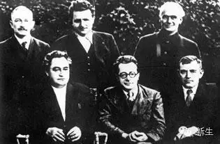 ▲季米特洛夫(前排左一)和共产国际其他领导人1935年于苏联莫斯科。