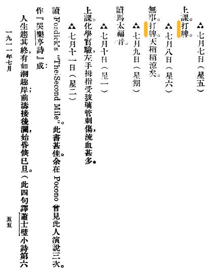其次我们要在麻将的档次上达成共识。至今仍有小部分不明真相的群众认为,麻将是赌博工具、是社会底层、无学历人员爱好的低层次娱乐活动。并指出,阿法狗也没有参与扎金花、梭哈、二十一点啊!这里让我们阅读一下胡适先生的日记: